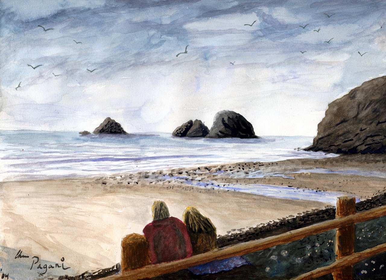 Sitting and watching the surf at Oceanside, Oregon, the light plays with her hair as water plays with the the sand…